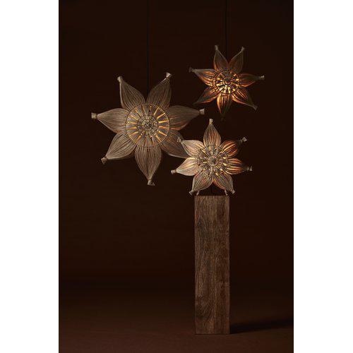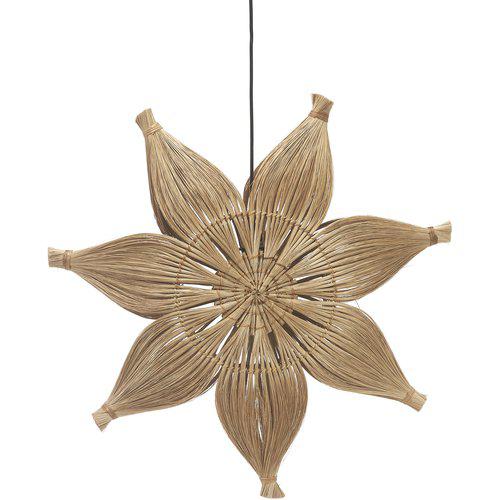 Agnes julstjärna tillverkad i naturfiber som filtrerar ljuset och ger ett dekorativt stämningsljus. Höjd 58cm, bredd 58cm och djup 14,5cm. 3,5m svart, sladdsats med väggplugg ingår. Små avvikelser i färg och storlek kan förekomma på grund av det naturliga materialet och att stjärnan är handgjord. E27 ljuskälla med max 25W. Vi donerar 1usd för varje såld stjärna till föreningen som producerar dem.