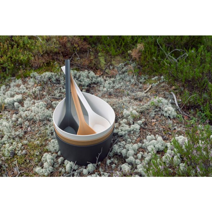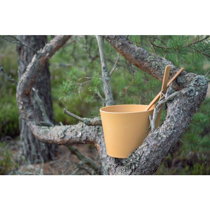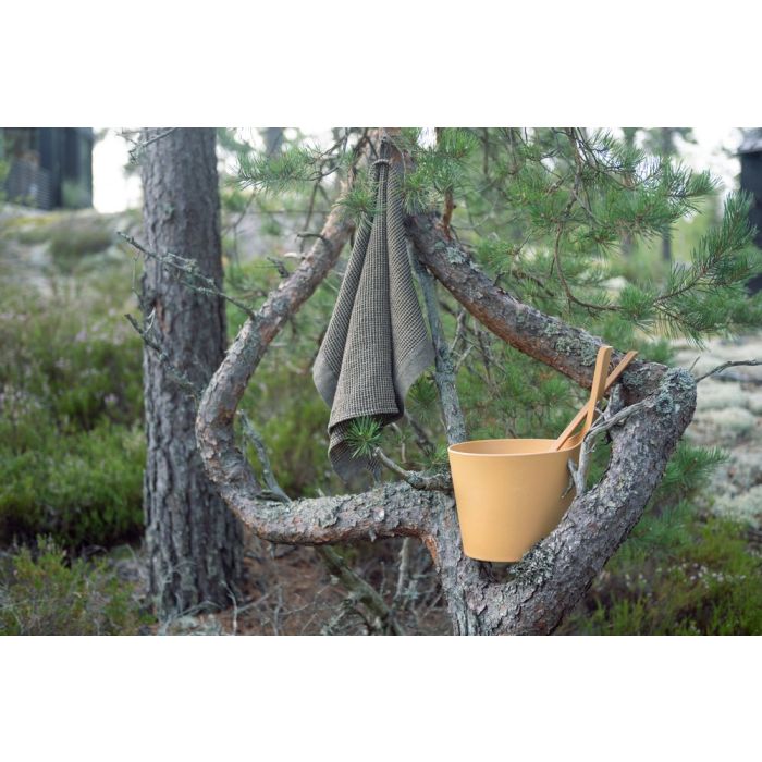 En bastuhink tillverkad av biokomposit i Finland som återger formen av en droppe på ett vackert sätt. Ångvatten kan också dräneras på värmaren längs den formade armen. Den rena och skandinaviska designen på Rento Pisara bastuskålar är helt och hållet resultatet av finskt arbete. Den slitstarka och bekväma naturfiberkompositen är ett utmärkt material för värmen och fuktigheten i bastun. Återvinningsbar, brännbar för energi.