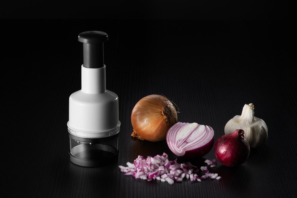 Strimlar lök, örter och grönsaker enkelt och snabbt. Handtvätt.