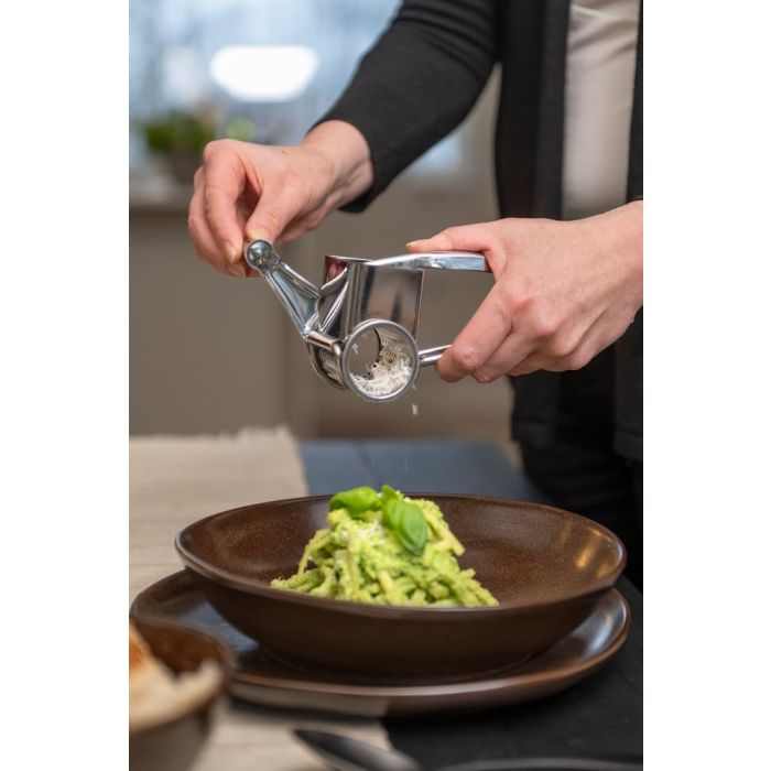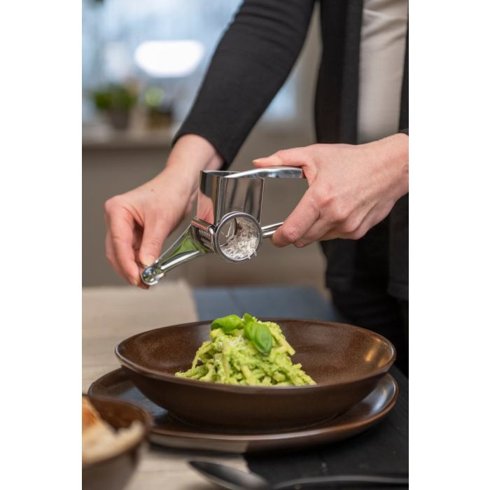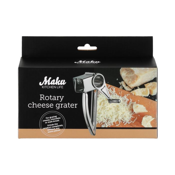 Handmanövrerat rivjärn för att riva ost, choklad och grönsaker. Riv produkten helt utan avfall. Enkel och säker att använda.
