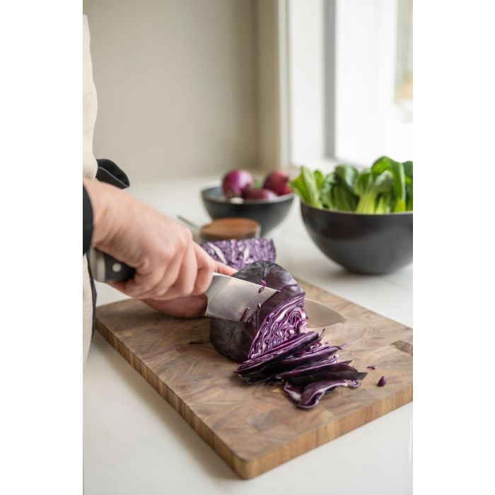 Skärbrädan är tillverkad av fyrkantiga bitar av akaciaträ, vilket skapar ett naturligt elegant mönster på skärbrädorna. Skärbrädan passar även bra som serveringsfat. Storlek 40 x 30 cm. Handtvätt, torka direkt efter tvätt. Förläng produktens livslängd genom att regelbundet behandla den med vegetabilisk